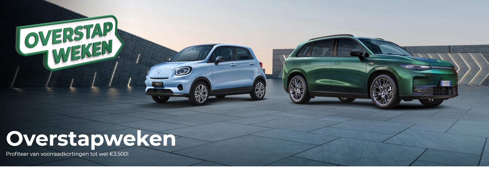 Stap nu over op elektrisch rijden met extra voordeel tijdens de Leapmotor Overstapweken! Van 17 oktober t/m 15 november 2025 profiteert u van exclusieve kortingen op geselecteerde voorraadmodellen. Voor de Leapmotor B10 profiteert u van voorraadkortingen tot € 1.000,-.